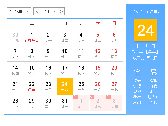 今天是2015年12月24日,星期四。