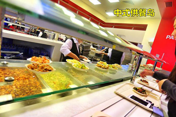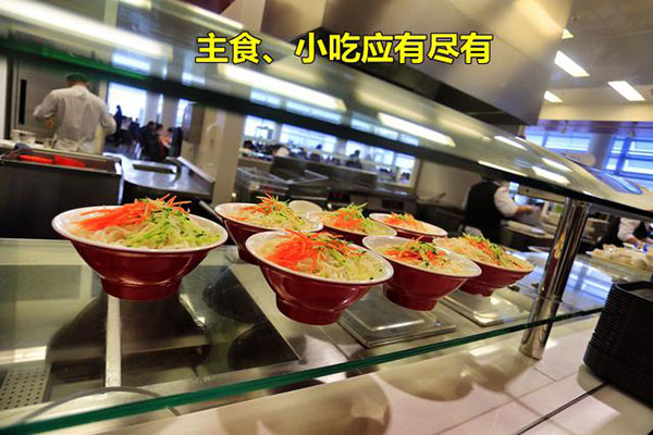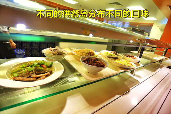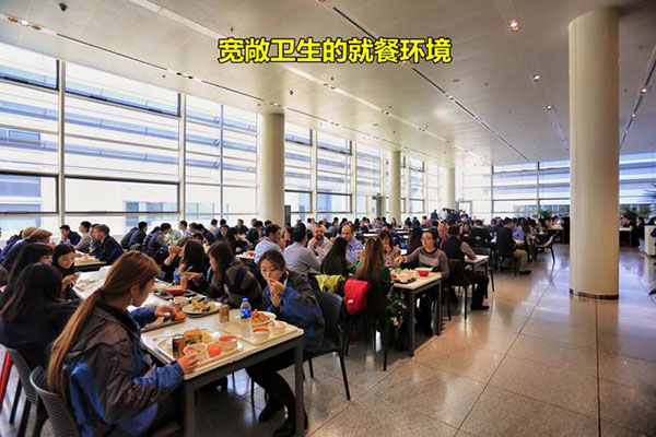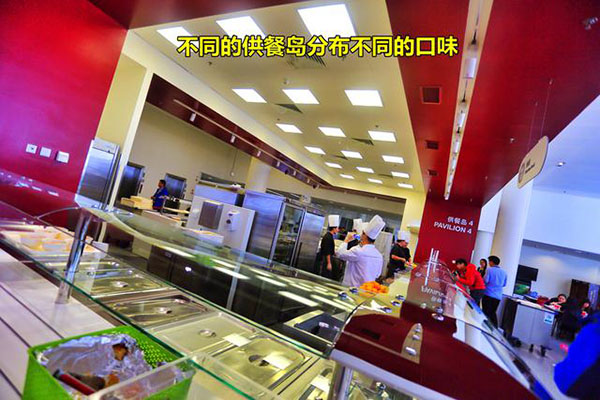 食堂全部是開放式布局,就餐時間是按每個車間分時段就餐。不說是單位食堂你會以為是一個經(jīng)營有序的大型中西餐廳,食堂以獨立的供餐島分布不同的口味區(qū),除了傳統(tǒng)的中西餐外還有面檔和麻辣燙,以及供應(yīng)給穆斯林員工的回民餐飲區(qū),也有供應(yīng)給特殊員工的關(guān)愛餐區(qū),非常人性化。
