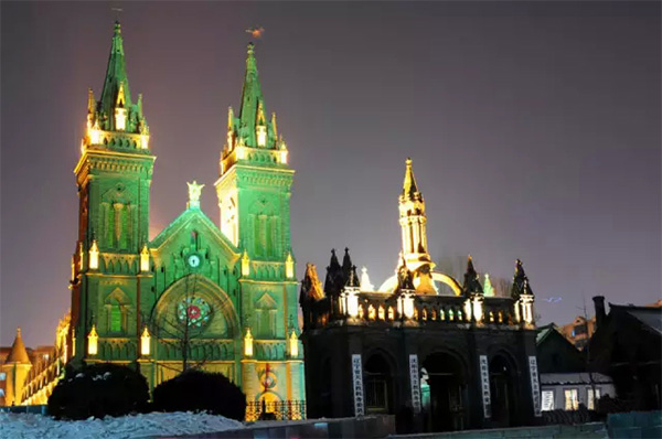 沈陽小南教堂也在夜晚中盡顯異域風(fēng)情。