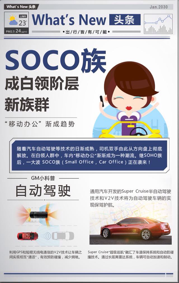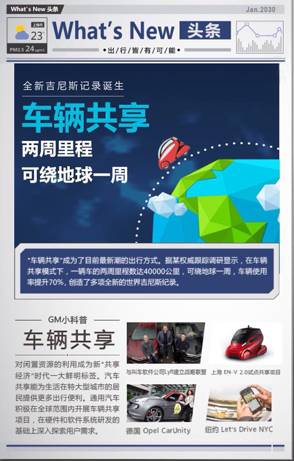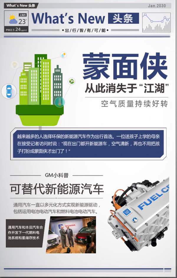 今天是2016年1月13日,想知道十幾年之后,我們的世界是什么模樣?有什么新鮮事發(fā)生?我們用什么交通工具出行?通用汽車給您郵寄一份來自2030年的電子報(bào),請(qǐng)您查閱。