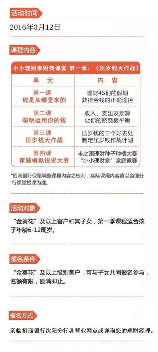 這是招商銀行聯(lián)合財(cái)商教育專家傾力打造的親子財(cái)商活動(dòng)走入的第6個(gè)年頭,今年的課程將全面升級(jí)!