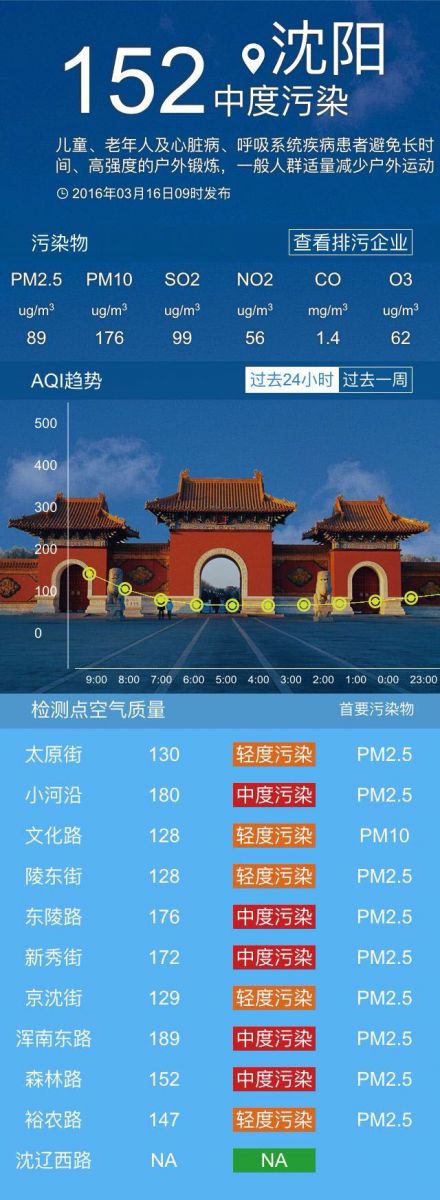 接下來共同關(guān)注沈陽未來幾天的具體天氣:今天白天溫度與昨天相似,最高氣溫為15℃,白天風(fēng)力仍然較大,5-6級(jí)西南風(fēng)。今天雖有陽光相伴,但是空氣質(zhì)量相對(duì)差了一點(diǎn),為重度污染;夜間風(fēng)力稍弱,最低氣溫2℃。