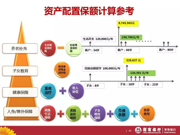 如果您覺得以上的公式算起來太麻煩,招商銀行有著專業(yè)的資產(chǎn)配置系統(tǒng),通過內(nèi)部的邏輯設置,也可以幫您計算出各大類配置的基本需求?! ?