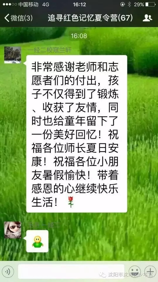 兩天的活動(dòng)在少年宮老師細(xì)心周到地安排下,孩子們過得既充實(shí)又開心。滿洲省委舊址里認(rèn)真地聆聽講解、樹蔭下聽老英雄追憶往事,沈陽(yáng)市團(tuán)校內(nèi)揮汗如雨的歷奇訓(xùn)練、夜晚多功能廳內(nèi)興高采烈地聯(lián)歡、荷花池旁的駐足、科技館里探索科學(xué)世界的秘密……這一幕幕都深深地刻在了孩子們的腦海里,洪亮的口號(hào)是孩子們堅(jiān)定的信念,張張笑臉是活動(dòng)過程中成功的印記。白天孩子們共同享受團(tuán)隊(duì)生活的快樂,夜晚躺在床鋪上一起述說童年的趣事。閉營(yíng)儀式上,同學(xué)們相擁而泣,短暫的兩天讓大家結(jié)下了深厚的友誼。