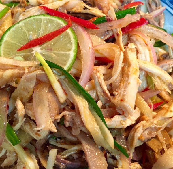 4、雞肉絲、黃瓜絲、檸檬、蒜、辣椒放入大碗,加生抽、胡椒粉、芝麻拌勻即可。