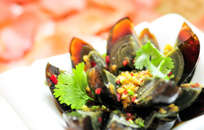 1、皮蛋剝殼洗凈切瓣擺盤,青紅辣椒、小蔥、姜、蒜切好;