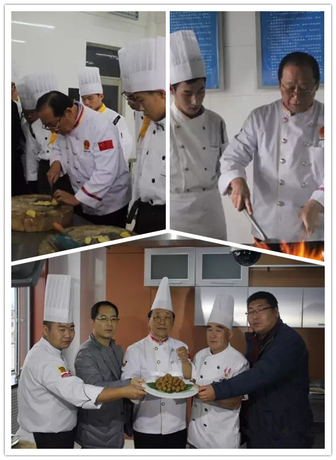 劉敬賢大師走進實訓課堂,親自指導學生刀工技法及烹調技藝,叮囑同學們學習廚藝要有耐心、恒心,掌握技巧,反復練習。劉敬賢大師親自為2015級敬賢廚藝西餐班演示扒素魚翅、干炸丸子、?大蝦、扒白菜、蔥燒遼參五道經(jīng)典名菜。同學們觀摩了大師的經(jīng)典名菜,品嘗了大師親手制作的菜品,贊嘆不已。同學們得到劉敬賢大師的技藝真?zhèn)?,收獲很大,紛紛表示希望學校能夠為他們創(chuàng)造更多的名師進?;顒印?/span>