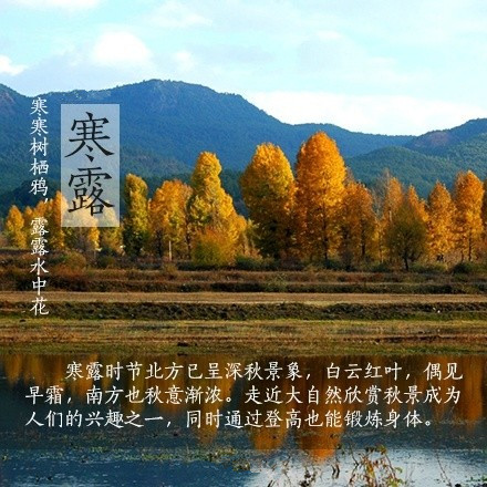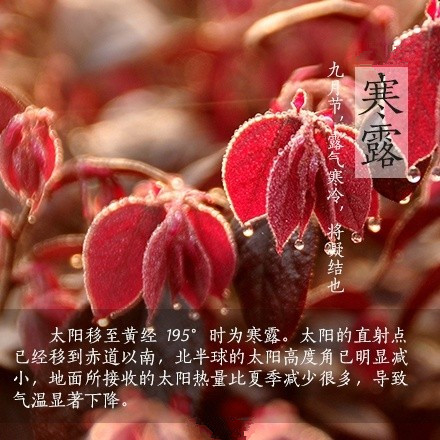 寒露節(jié)氣是秋季的第五個節(jié)氣,寒露意味著氣候由涼爽到寒冷的轉(zhuǎn)變,氣溫比白露時更低,地面的露水更冷, 快要凝結(jié)成霜,在此沈陽東方和利廚業(yè)有限公司提醒大家要注意保暖,小心著涼。