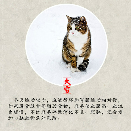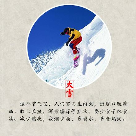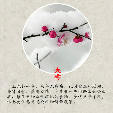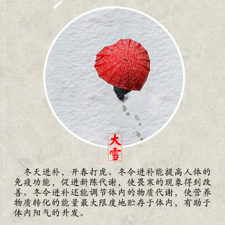 昨日本是大雪節(jié)氣,但是今日這場大雪才如約而至,你有沒有和雪來一場互動呢?堆個雪人,打個雪仗,在綿綿的雪地上留下自己的腳印,但是玩耍的同時大家不要忘記注意保暖哦! 大雪時節(jié)是身體進(jìn)補的大好時節(jié),大雪補養(yǎng)得當(dāng),來年就有很堅實的身體底子,抵抗疾病的侵?jǐn)_。萬物生機(jī)潛藏,不宜擾動陽氣,鍛煉方面應(yīng)動中求靜,保持心情沉靜愉悅,起居方面應(yīng)早睡晚起,避免受寒,居室溫度宜保持在16~20℃,濕度宜保持30%~40%,濕度過低會造成咽喉干燥,引發(fā)上呼吸道疾病的發(fā)生。