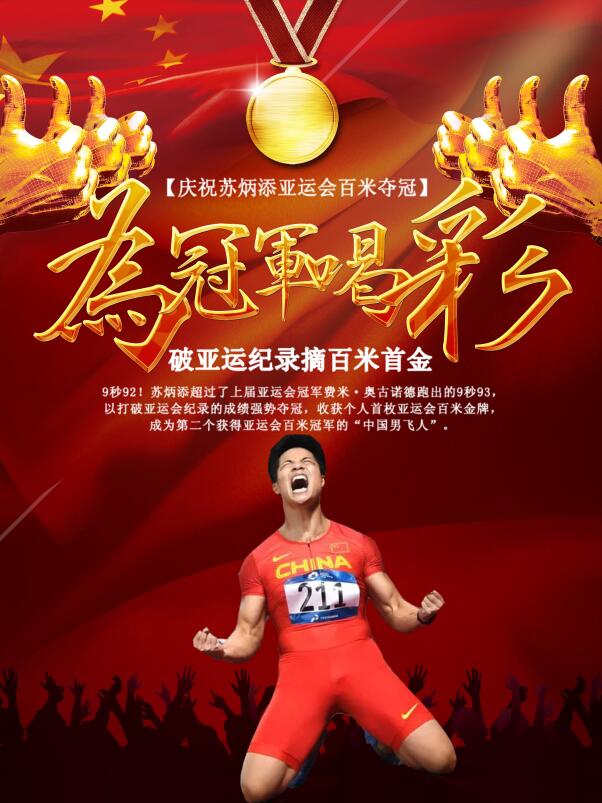 "這是我十多年運(yùn)動員生涯中拿到的第一枚金牌。"沖過線后的蘇炳添接過國旗,向場邊奔跑。此前在省運(yùn)會、全運(yùn)會、亞運(yùn)會等綜合性運(yùn)動會中都未能登頂?shù)奶K炳添,終于收獲了一枚個(gè)人項(xiàng)目金牌。
