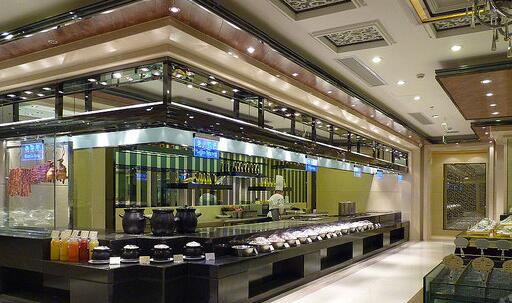 明檔相當(dāng)于菜譜,因此擺放上必須為營銷而服務(wù)。為使明檔更具吸引力,可以適當(dāng)創(chuàng)造新鮮感和食欲感,單個菜品可以擺成特殊的造形,給顧客帶來新奇的感覺,增強(qiáng)點(diǎn)菜的欲望;用燈光直射樣品,使其清晰明亮。這樣,鮮活的食材,協(xié)調(diào)的燈光,特別的形狀,整齊的擺放,既吸引客人的視線,又激發(fā)他們的食欲。