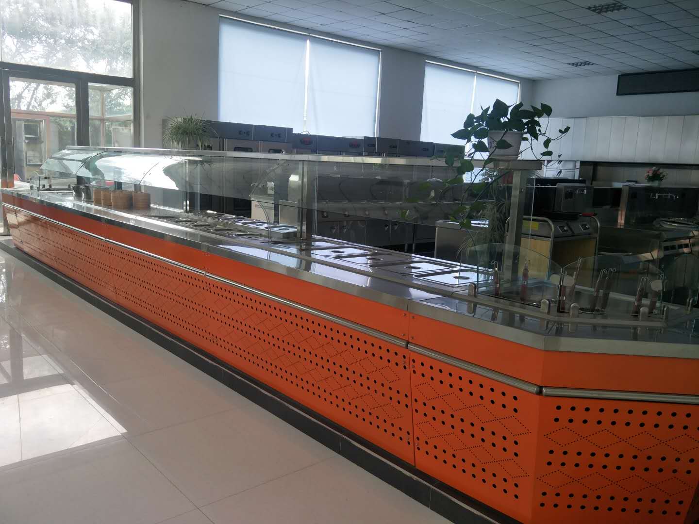 以前的廚房都是設(shè)在后臺,客人是看不到廚房的。明檔的好處是讓人一目了然,不僅顧客會多點(diǎn)喜歡的菜,而且有了新菜,也可以及時展示。