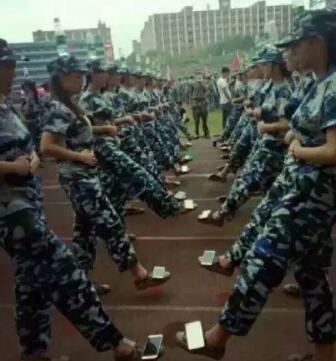 站軍姿,可以說它是一切軍事動(dòng)作之母,也是軍訓(xùn)時(shí)要必學(xué)的本領(lǐng)。學(xué)生們站不好軍姿,教官就要學(xué)生們把手機(jī)放在腳上。有能耐就踩,踩碎了教官可不賠哦!
