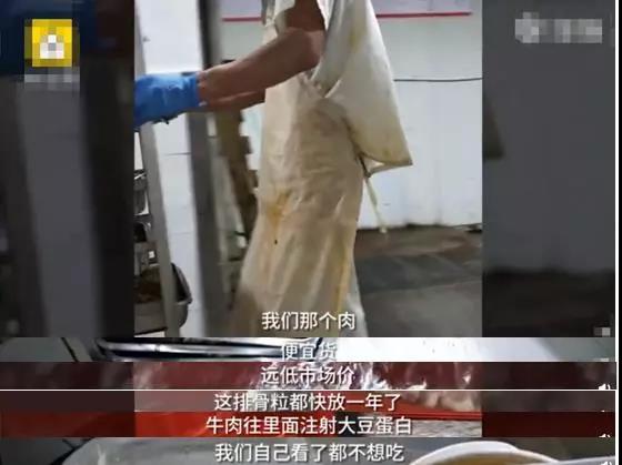 所選食材都是大量劣質(zhì)食品,排骨放置時間快一年!牛肉注射大豆蛋白!員工表示自己看了惡心都不想吃!