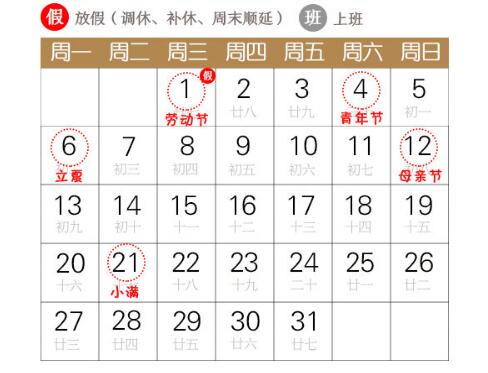 因?yàn)?span style="margin: 0px; padding: 0px; max-width: 100%; box-sizing: border-box !important; word-wrap: break-word !important;">5月1日為星期三