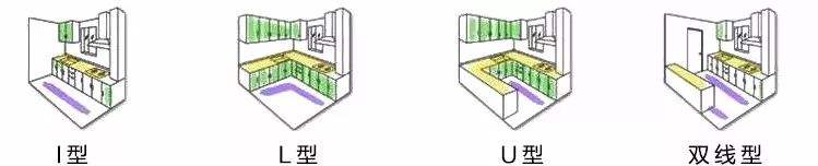 廚房布局的類型應依據結構、面積、高度以及廚房設備的具體規(guī)格進行,有以下幾種類型可供參: