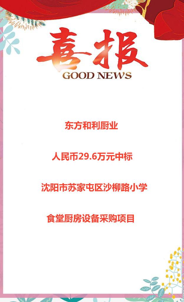 喜報:東方和利廚業(yè)中標(biāo)蘇家屯沙柳路小學(xué)食堂廚房設(shè)備采購項目