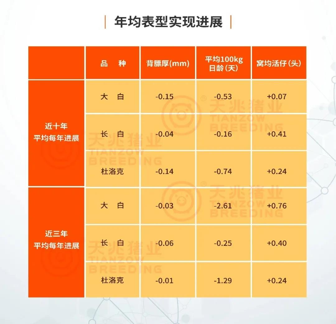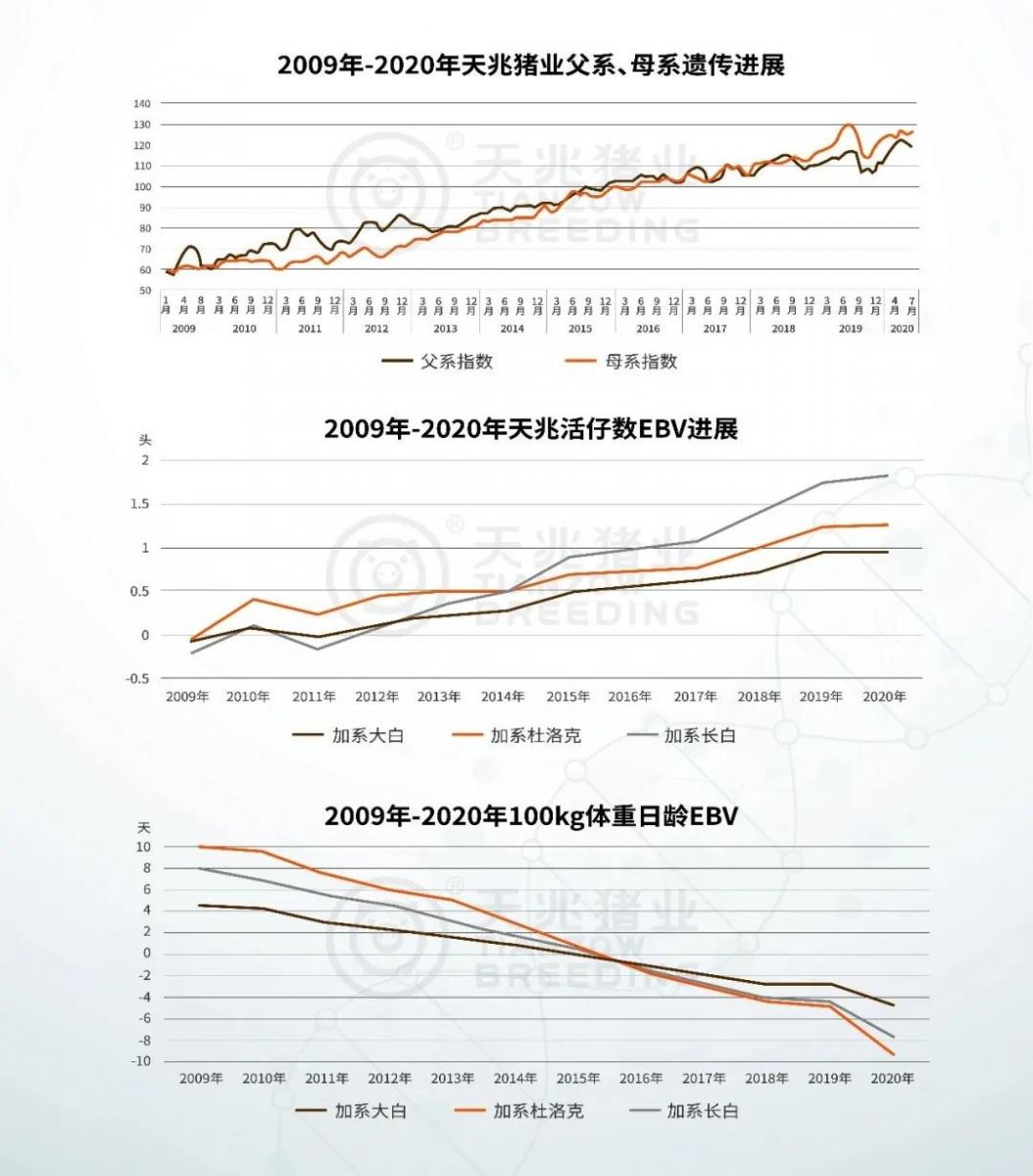 ☉2009年—2020年天兆豬業(yè)遺傳進(jìn)展成果