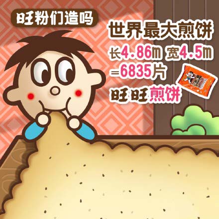 全世界最大的煎餅是來(lái)自俄羅斯的長(zhǎng)4.86寬4.5米的薄煎餅。大小相當(dāng)于6835片旺旺煎餅。