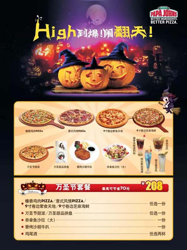 棒約翰在萬圣節(jié)期間特意為大家精挑細選了神秘禮品。只要你來到店里任意消費就可以獲得。而且是限量的哦!數(shù)量有限,先到先得!