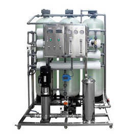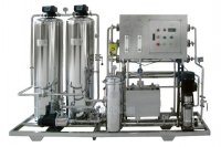 大型凈水設備利用反滲透技術,將原水經(jīng)過預處理的多介質過濾器、活性碳過濾器或軟化樹脂過濾器和精密過濾器之后,再通過水泵加壓,利用孔徑為1/10000μm的反滲透膜,使較高濃度的水變?yōu)榈蜐舛人瑫r將工業(yè)污染物、重金屬、細菌、病毒等大量混入水中的雜質絕大部分隔離,可以一次性去除掉原水中98%以上的離子。從而達到飲用規(guī)定的理化指標及衛(wèi)生標準,產出至清至純的水,適合用水需求大的,例如酒店、大型食堂、工廠等場所。